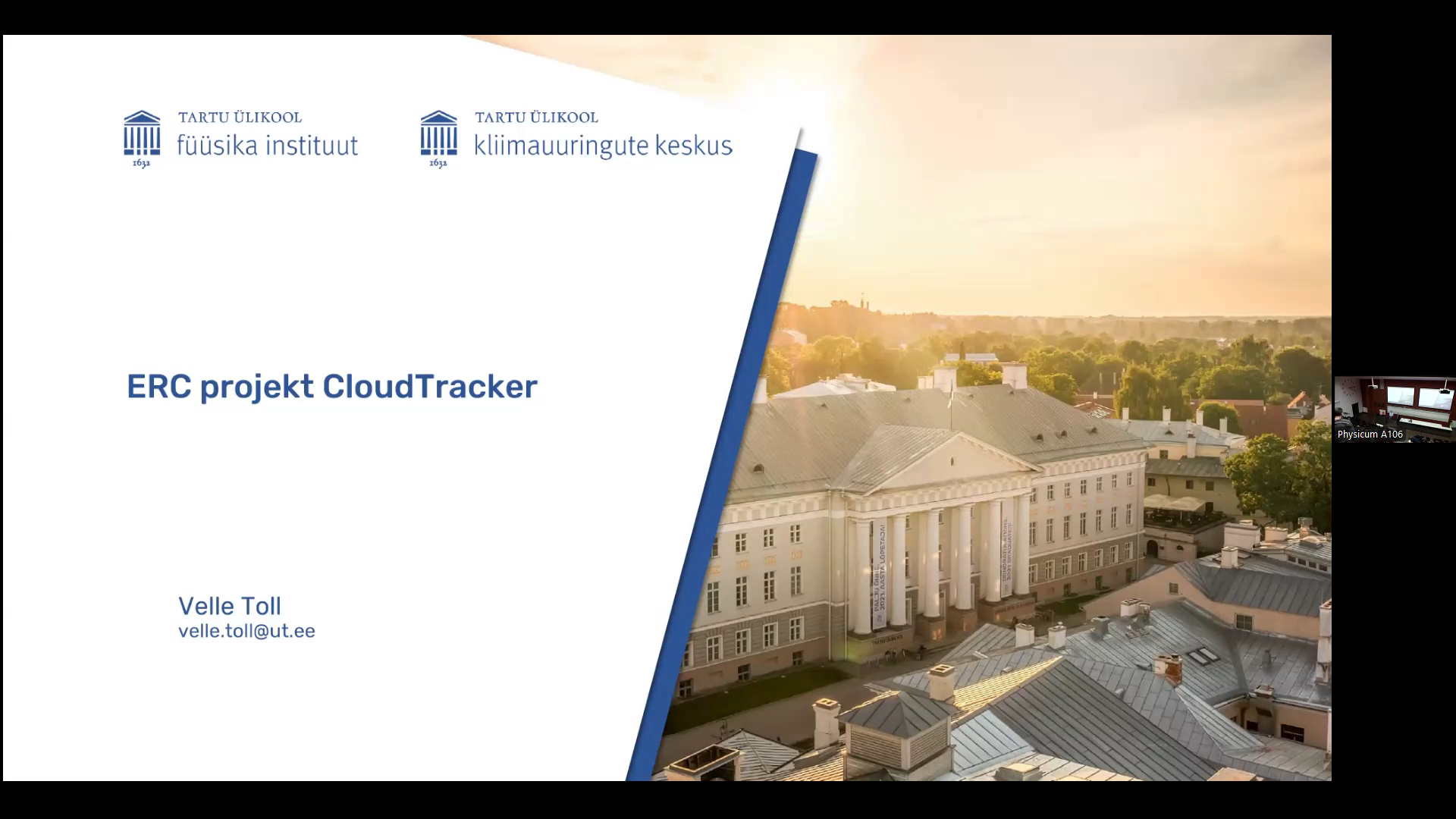 Physicumi seminar: Velle Toll "CloudTracker: ERC projekt inimtekkeliste õhusaasteosakeste mõjust pilvedele ja Maa kliimale"