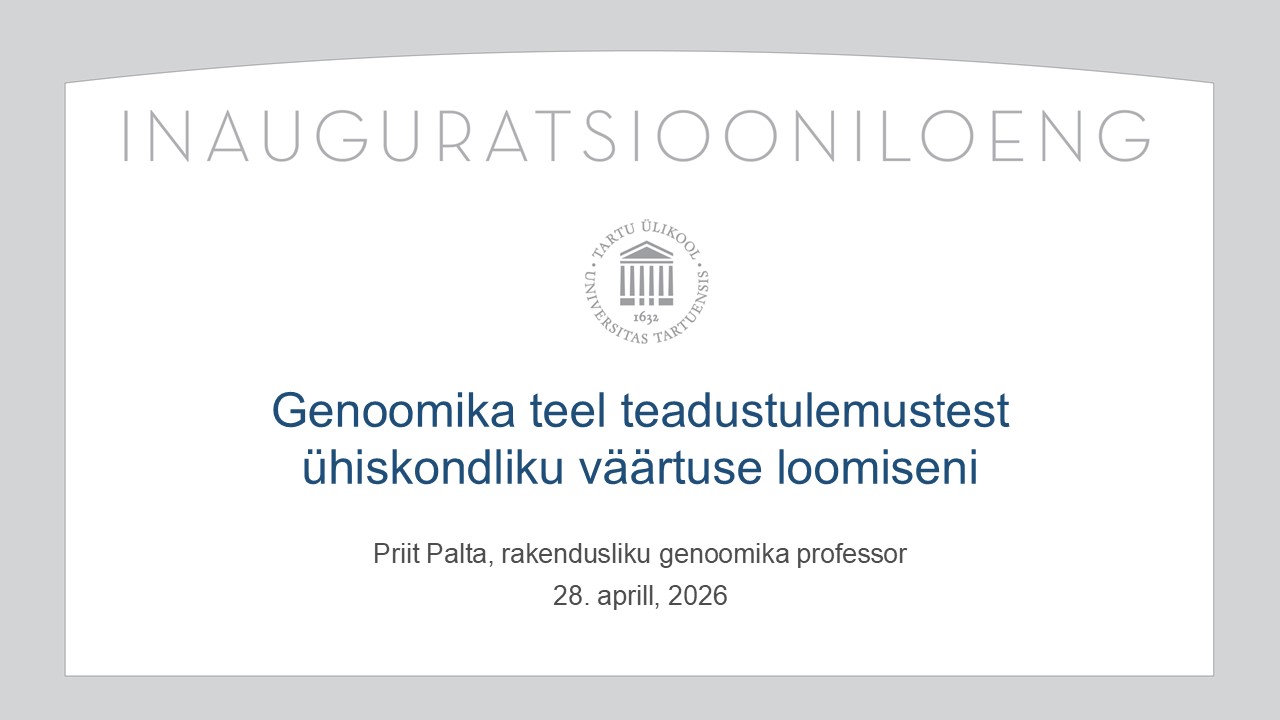 INAUGURATSIOONILOENG „Genoomika teel teadustulemustest ühiskondliku väärtuse loomiseni“ Tartu Ülikoolirakendusliku genoomika professor Priit Palta