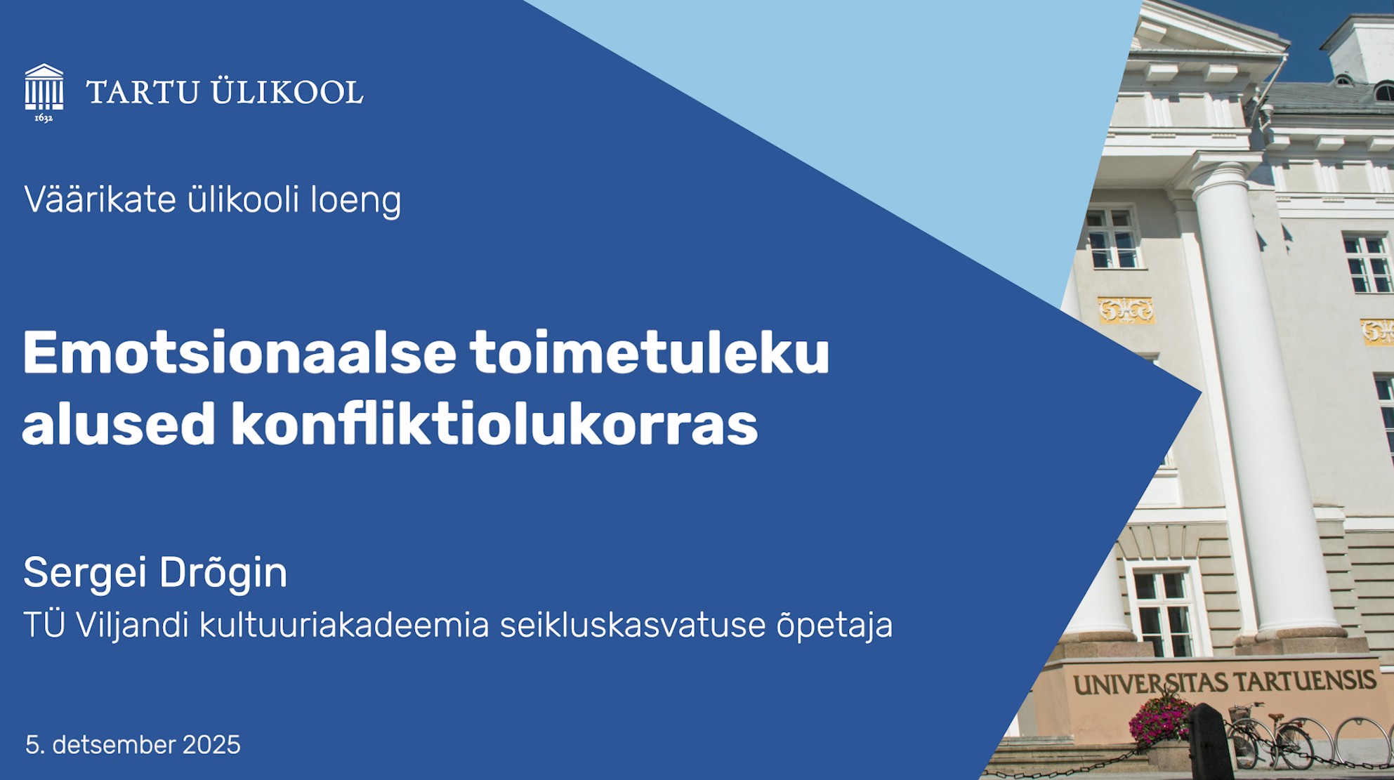 Tartu Ülikooli väärikate ülikooli loeng „Emotsionaalse toimetuleku alused konfliktiolukorras“ (Sergei Drõgin, TÜ Viljandi kultuuriakadeemia seikluskasvatuse õpetaja) 05.12.25